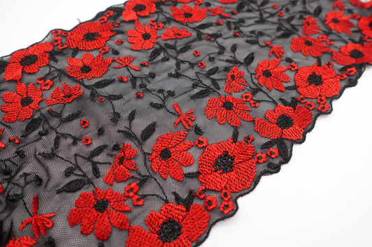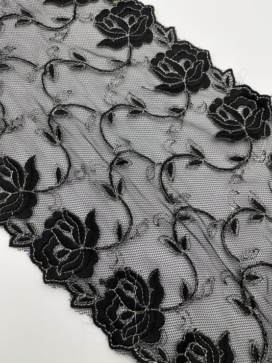 Midnight Rose - 1 Meter Embroidered Tulle Lace