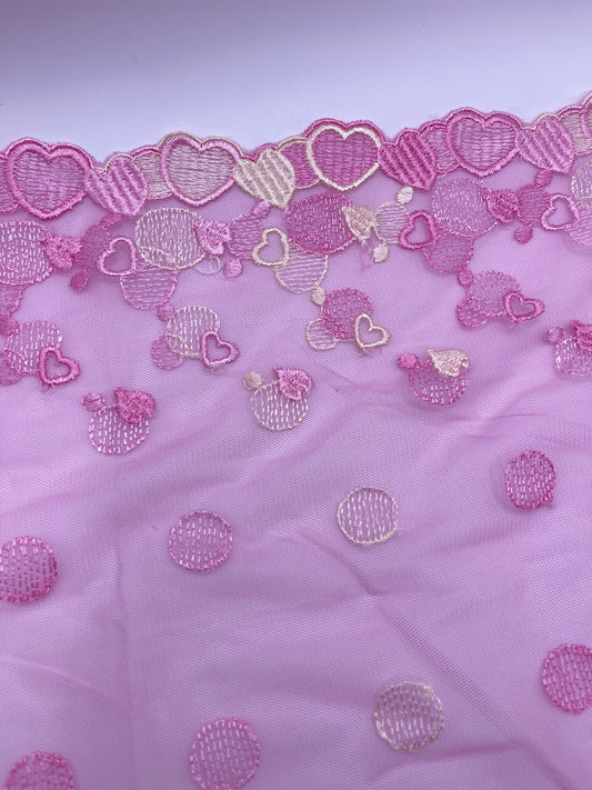 Pink Hearts - 1 Meter Embroidered Tulle Lace
