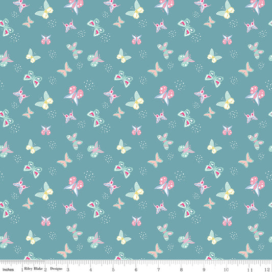 Poppy and Posey - Butterflies Teal - Riley Blake Designs