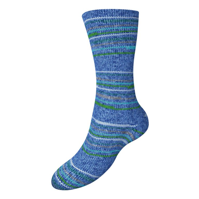 Austermann Step 4 est un fil à chaussettes 4 brins réputé pour ses transitions de couleurs saisissantes et sa douceur. Infusé d'huiles d'aloe vera et de jojoba, il est non seulement doux pour les mains pendant le tricot, mais aussi apaisant pour les pieds lorsqu'il est porté.