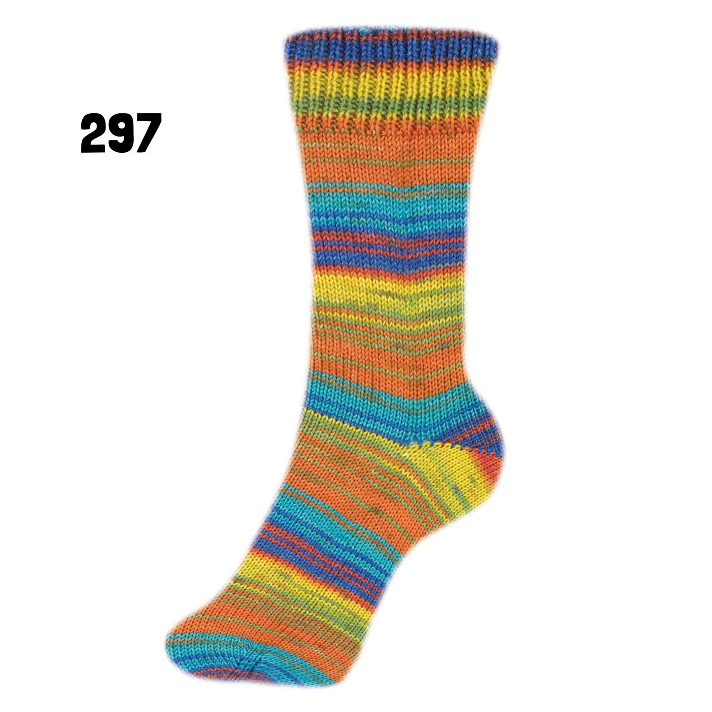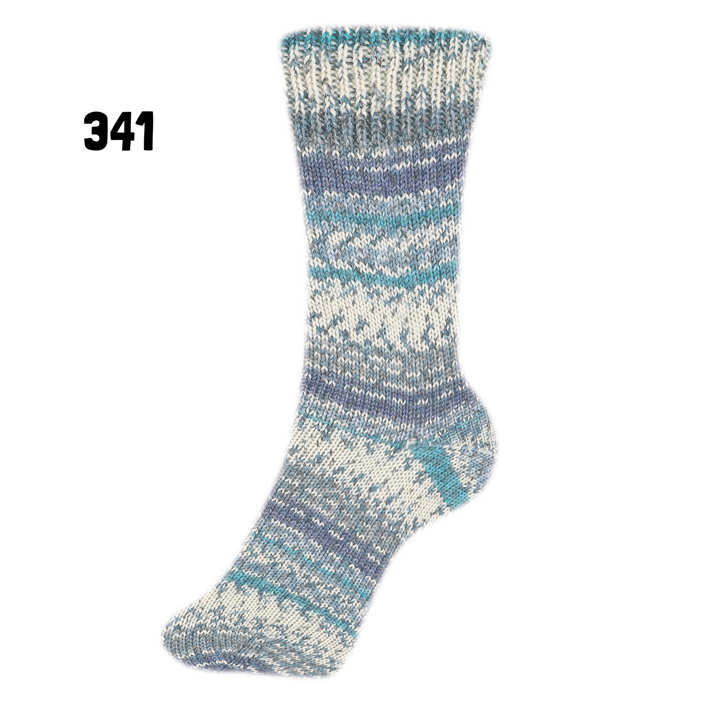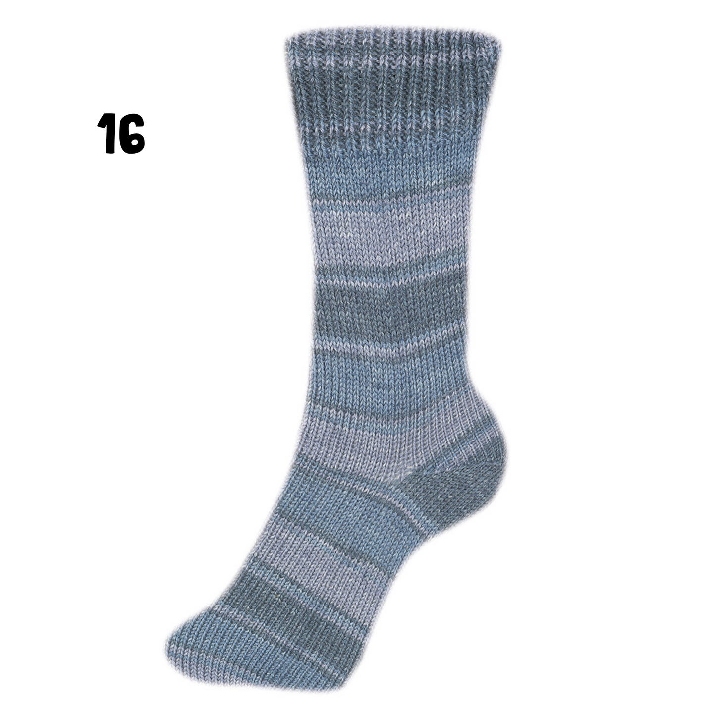 Austermann Step 4 is a 4-ply sock yarn known for its striking color transitions and softness. Infused with aloe vera and jojoba oils, it is not only gentle on your hands while knitting but also soothing for your feet when worn.
