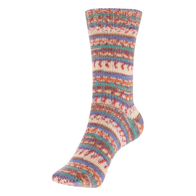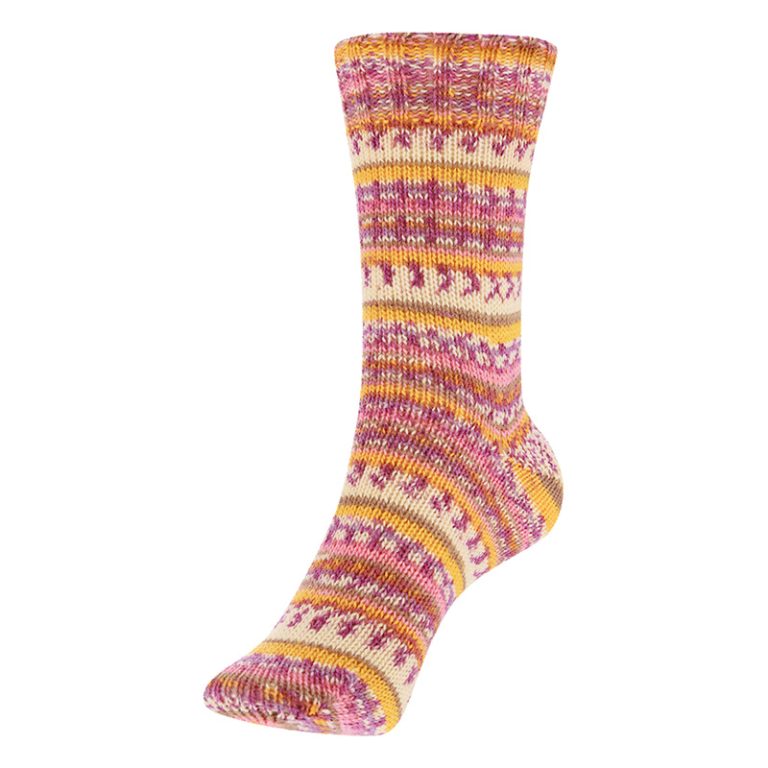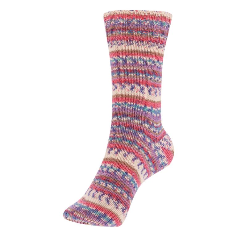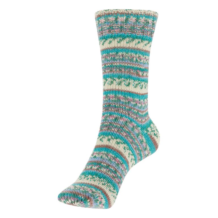 Austermann Step 4 is a 4-ply sock yarn known for its striking color transitions and softness. Infused with aloe vera and jojoba oils, it is not only gentle on your hands while knitting but also soothing for your feet when worn.