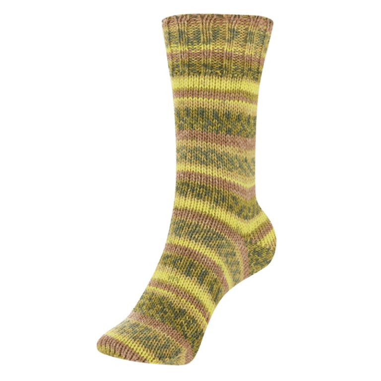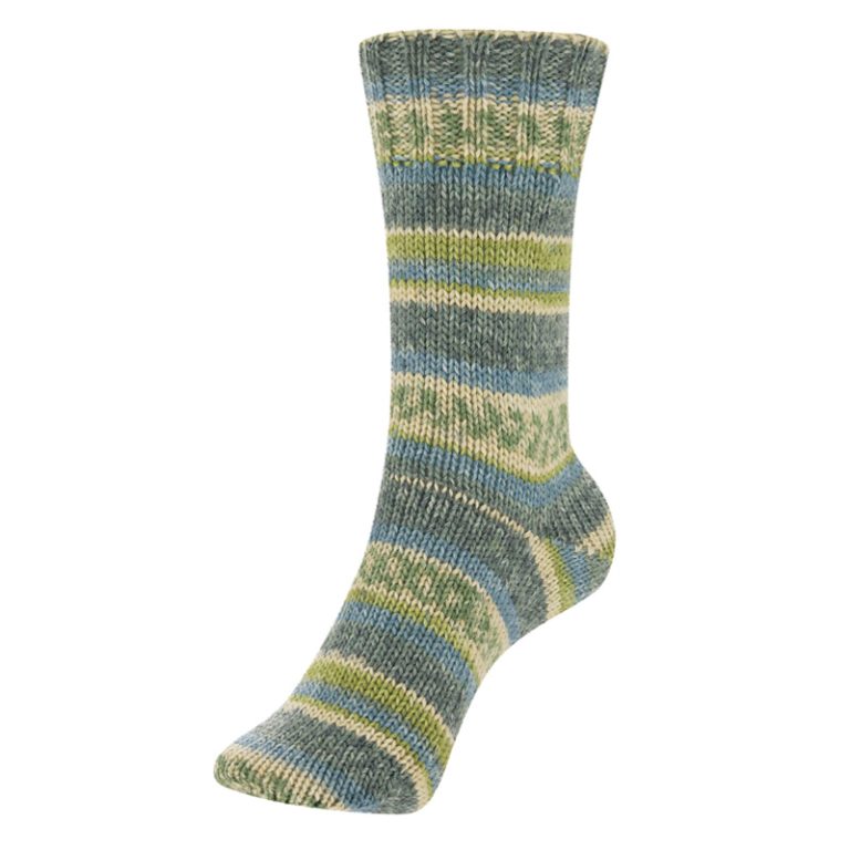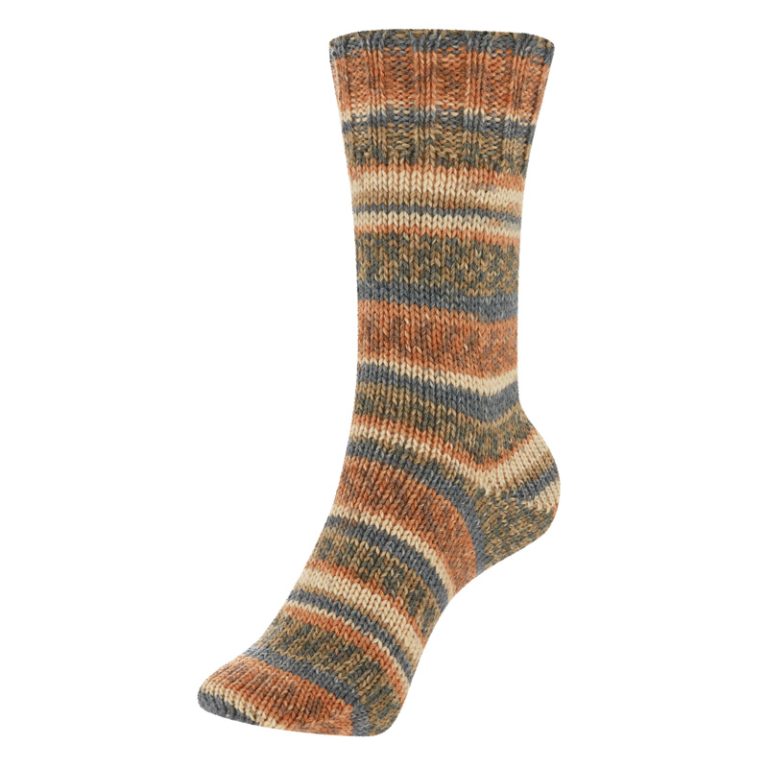 Austermann Step 6 is a 6-ply sock yarn known for its striking color transitions and softness. Infused with aloe vera and jojoba oils, it is not only gentle on your hands while knitting but also soothing for your feet when worn.